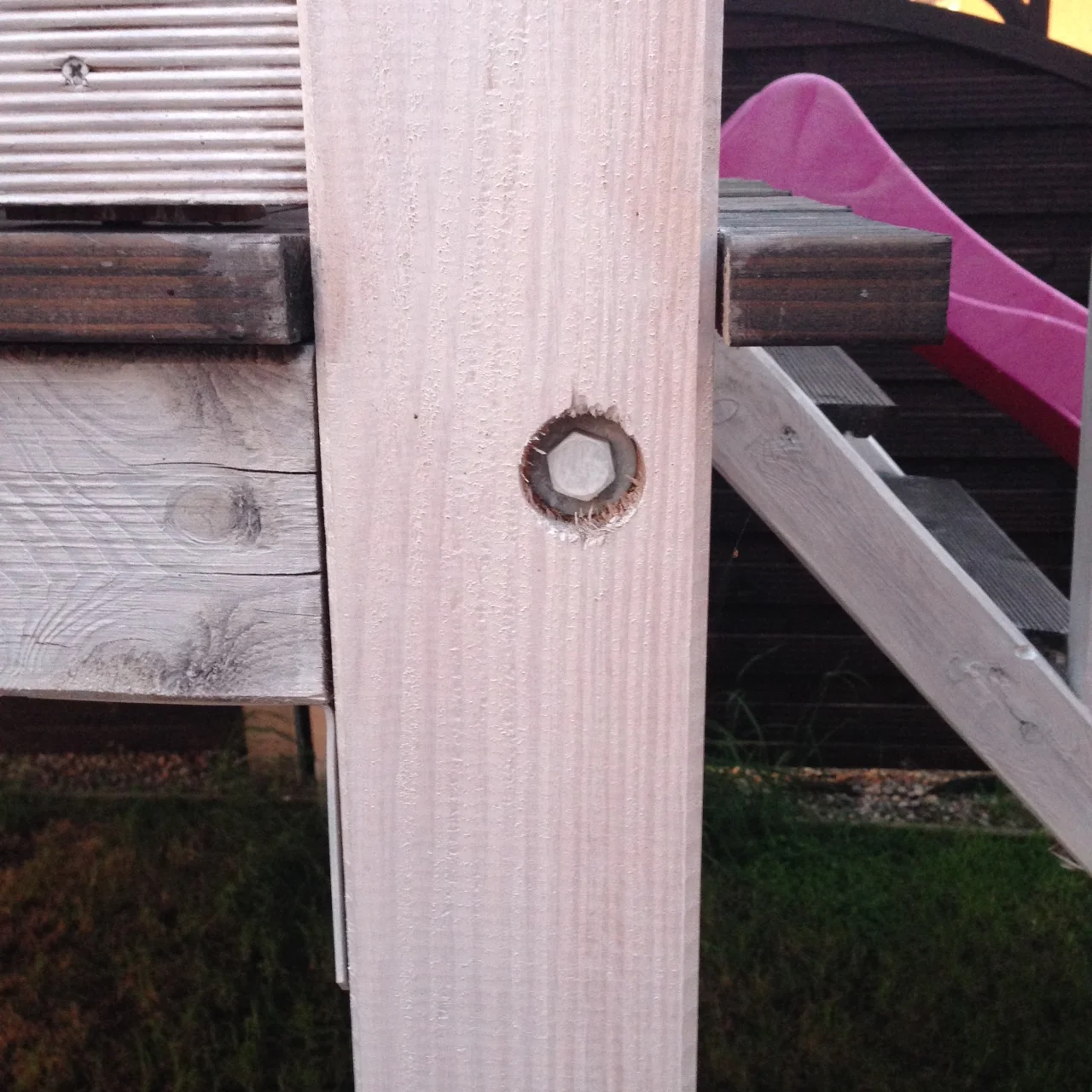 - narzędzia: wiertarko-wkrętarka, ukośnica do drewna, pilarka, wiertła płaskie do drewna (22mm), wyrzynarka, zaciski stolarskie duże, młotek, poziomica, miarka, śrubokręt, klucz nasadkowy 20mm, ołówek.