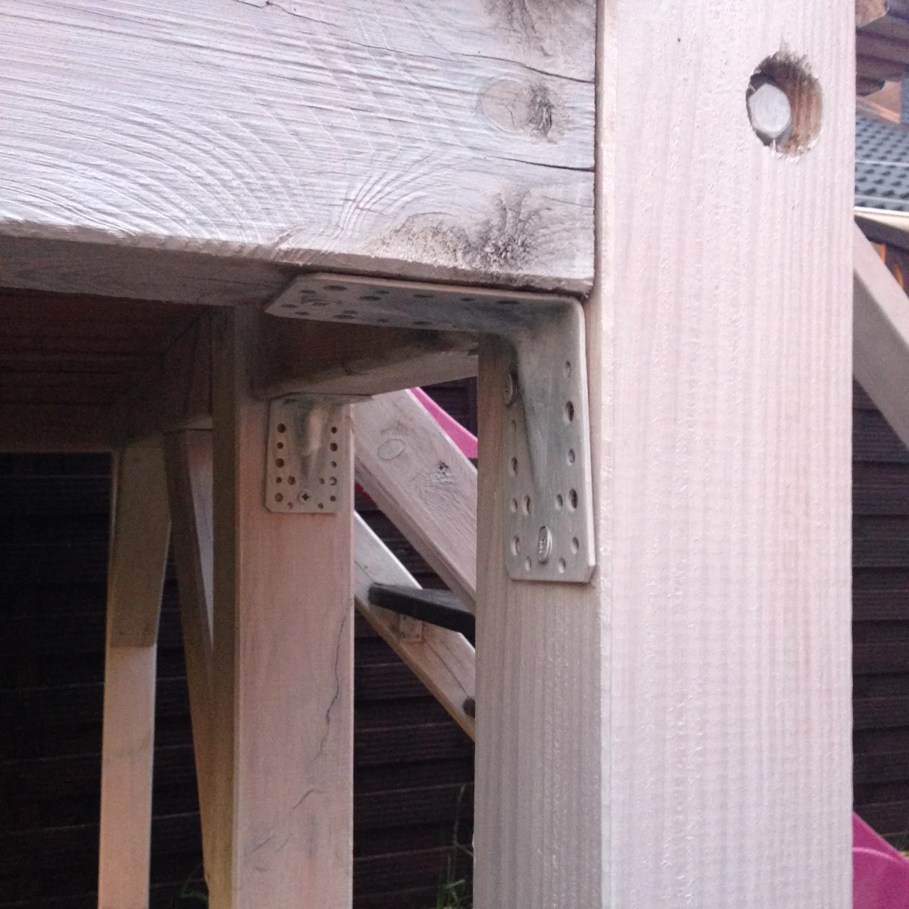 - elementy mocujące wkręt drewno: 12x200mm (tego typu >>>) - ok.30szt., kątowniki metalowe do mocowania belek nr 4, gwoździe i wkręty