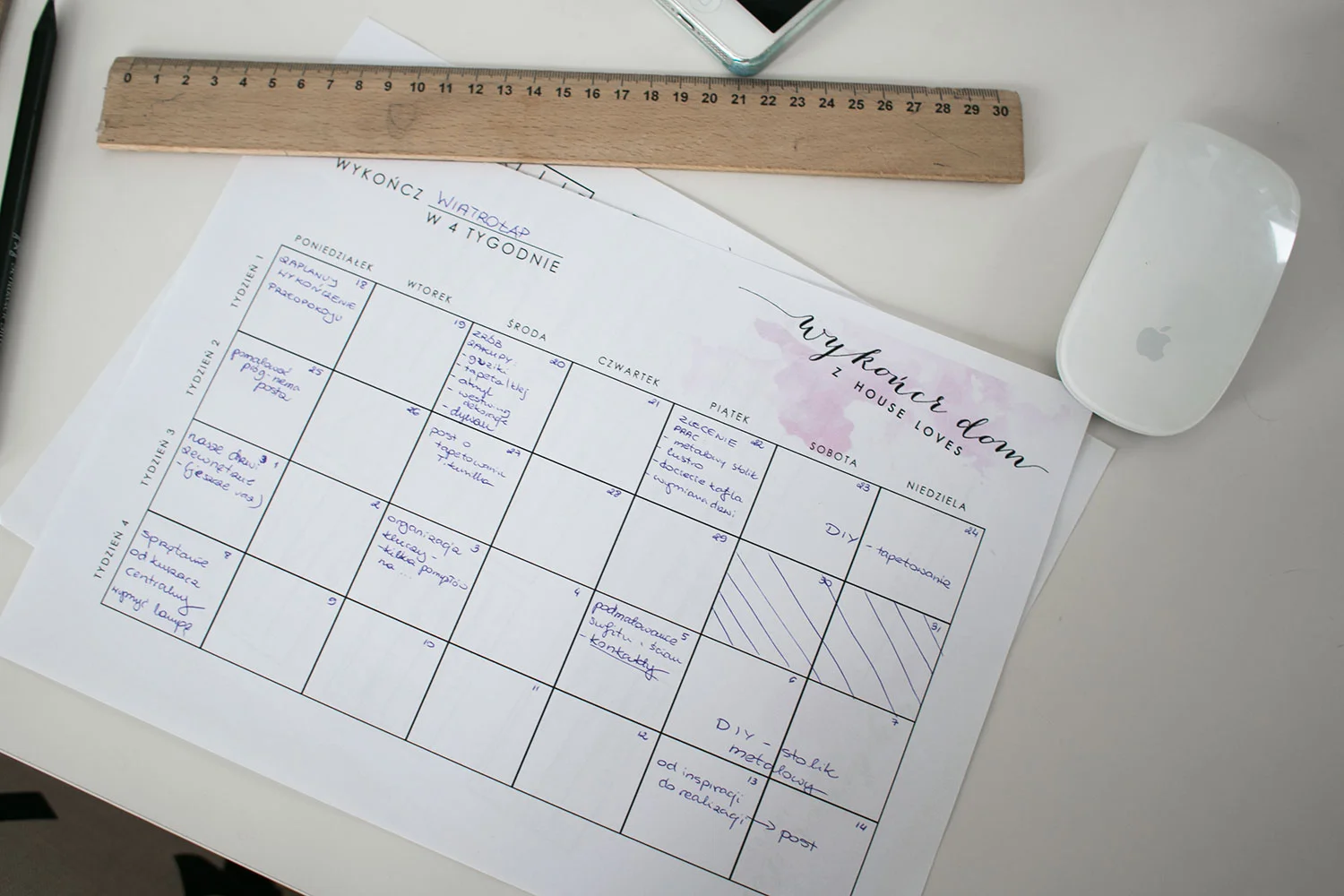 następnie rozplanowujemy KALENDARZ na kolejne 4 tygodnie. wyzwanie nie musi trwać 4 tygodnie. może być krócej, może dłużej. jak wam wygodnie i jakie macie priorytety. ja proponuję 4 tygodnie, bo wydaje mi się, że to dobry punkt wyjścia.