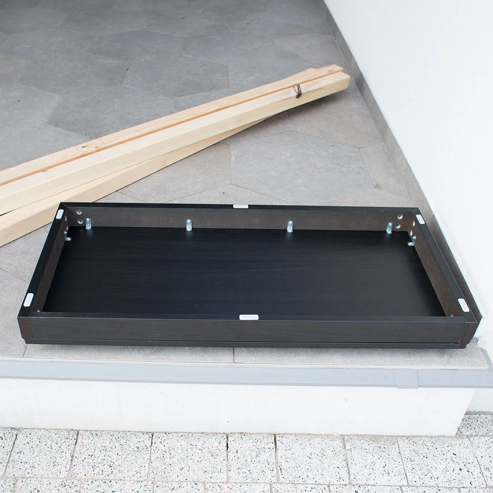 Odwracamy stelaż na nogi i sprawdzamy jego stabilność. Nogi są grube i wytrzymałe. Są wysokie i podnoszą witrynę o 70cm nad ziemię. Nogi są stabilne, ale nie na tyle, aby witryna mogła stać bez zakotwienia do ściany i o tym przypomnę jeszcze raz na końcu.