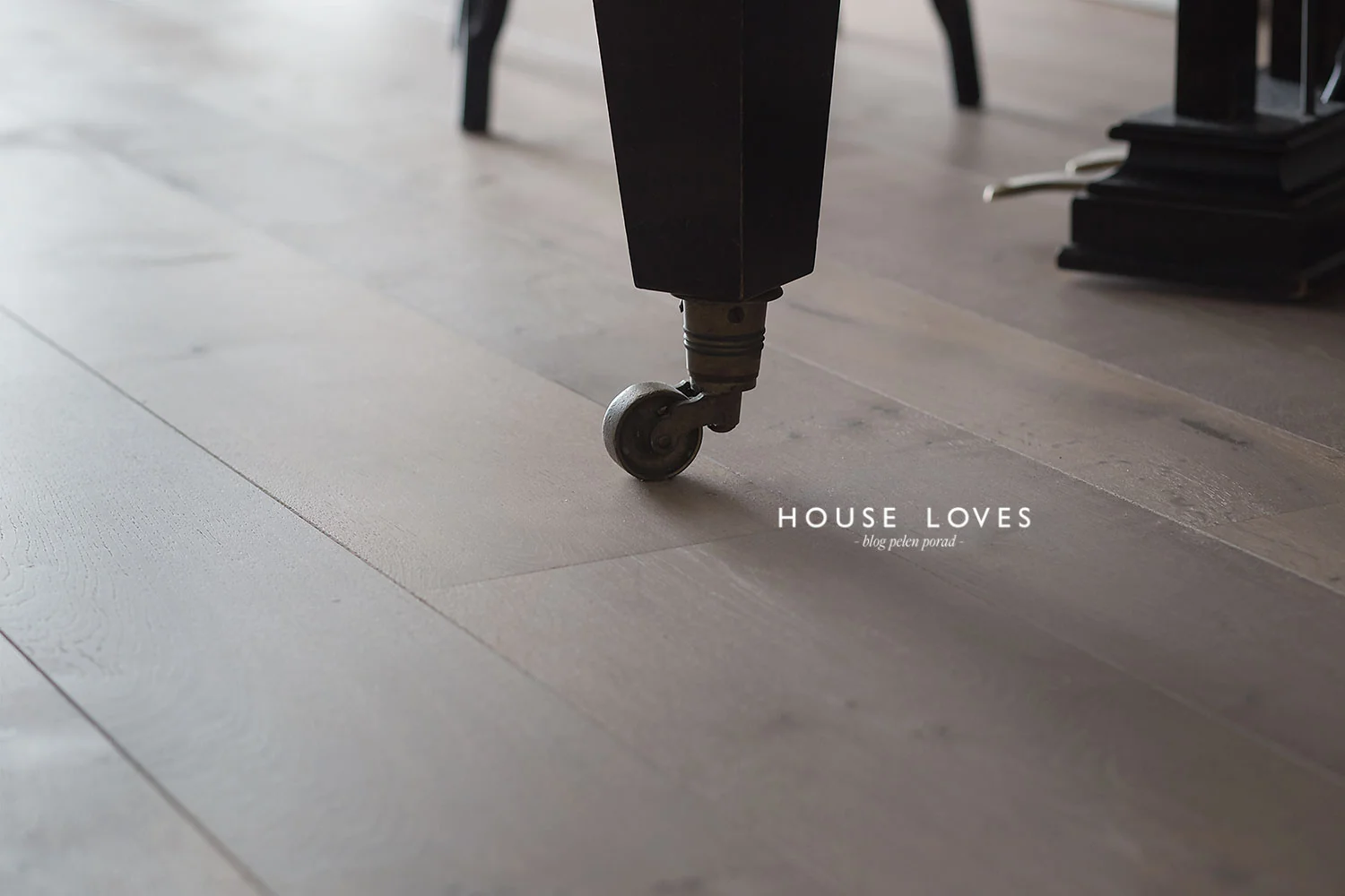 Podłoga Chapel Parket to podłoga moich marzeń i gdybym mogła wybrać jeszcze raz, to położyłabym ją dodatkowo we wszystkich innych pomieszczeniach w domu (sypialniach na piętrze). Posiadam ją u siebie od 3,5 roku i uwielbiam tę podłogę, jestem w niej zakochana, a KAŻDY, kto do nas przychodzi - jest nią zachwycony. Wszyscy moi klienci, którzy też zdecydowali się na deskę Chapel Parket, pałają do niej tą samą miłością i uwierzcie, że nie ma kolorystycznie i wykończeniowo drugiej takiej na rynku. Chapel Parket posiada swoją, chyba jakąś tajemną, metodę obróbki dębu, co sprawia, że ta podłoga wygląda po prostu bajecznie, a przy tym różni się kolorystką od tego, co ma konkurencja. Dodatkowo użytkuje się ją fantastycznie. Mój salon (link >>>) i kuchnia (link >>>) jest tego najlepszym przykładem. Podłogę drewnianą eksploatuję, jak wspominałam, już 3,5 roku. Po upływie pierwszego roku olejowaliśmy ją ponownie, jak radzi producent (o czym możecie poczytać tutaj >>>). Kiedy minęły kolejne 2 lata (latem 2018), znowu powinniśmy ją zaolejować, ale zdecydowałam poczekać z tym do wiosny 2019; tak więc niedługo ponownie będziemy to robić. Deska jest dość twarda jak na drewnianą podłogę (a mam porównanie z innymi producentami). Zdarza nam się szorować po niej krzesłami, dzieci bawią się tutaj zabawkami, a w kuchni przy wyspie - non stop ktoś urzęduje (siada na hokerach (link >>>), spadają resztki jedzenia, nóżki od wyspy odpadają i uderzają w podłogę — serio, serio), więc ścieżki są tam wydeptane. I mimo tego nie ma na podłodze rys, które pozostawiają wgłębienia. Występują czasami powierzchowne przetarcia, ale one umiejscawiają się raczej w warstwie oleju, bo po przemyciu podłogi mopem - znikają. Sama czasami, aż się dziwię.